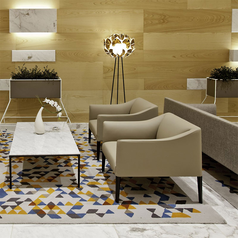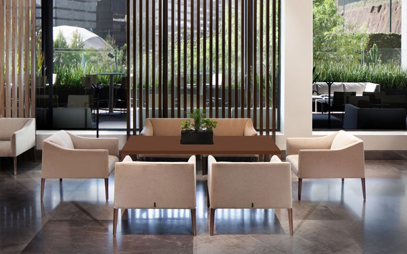 Están disponibles en diferentes versiones de pies de aluminio o madera de haya. Además, ofrece dos alturas de asiento, lo que permite una mejor adaptación para equipar ambientes corporativos y de colaboración de la misma forma que en espacios residenciales.