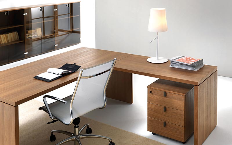 Lithos es la colección de muebles ejecutivos para oficinas en material de melamina, de 4 centímetros de grosor. Sólido, fuerte, elegante y versátil, permite combinar funcionalidad y diseño para amueblar los espacios de trabajo de los clientes más exigentes. Los colores básicos son cinco: Dark Oak, Natural Walnut, Elm, Oak y Rosewood, pero Lithos permite combinarlos para obtener una importante variedad de opciones. También hay diferentes tamaños disponibles para escritorios, armarios, elementos de servicio y cajoneras. La superficie del escritorio se puede ampliar con extensiones frontales y laterales. La característica principal de la colección es el escritorio «Presidencial» que permite ensamblar también los elementos de servicio integrados. Además de los detalles estéticos y funcionales, se prestó especial atención al precio, que es extremadamente competitivo.