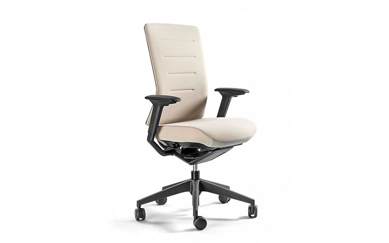 Tejido foamizado compuesto por espuma de poliuretano de 5mm + Tejido “T” o por espuma de poliuretano de 10mm, en diferentes acabados. Marco perimetral de inyección de Polipropileno + 30% fibra de vidrio. Sistema elevación de respaldo y apoyo lumbar adaptable.Brazo regulable en Altura. Caña de PA+FV. Apoyo de PP. Brazo regulable 3D. Caña de PA+FV. Apoyo de PUR
